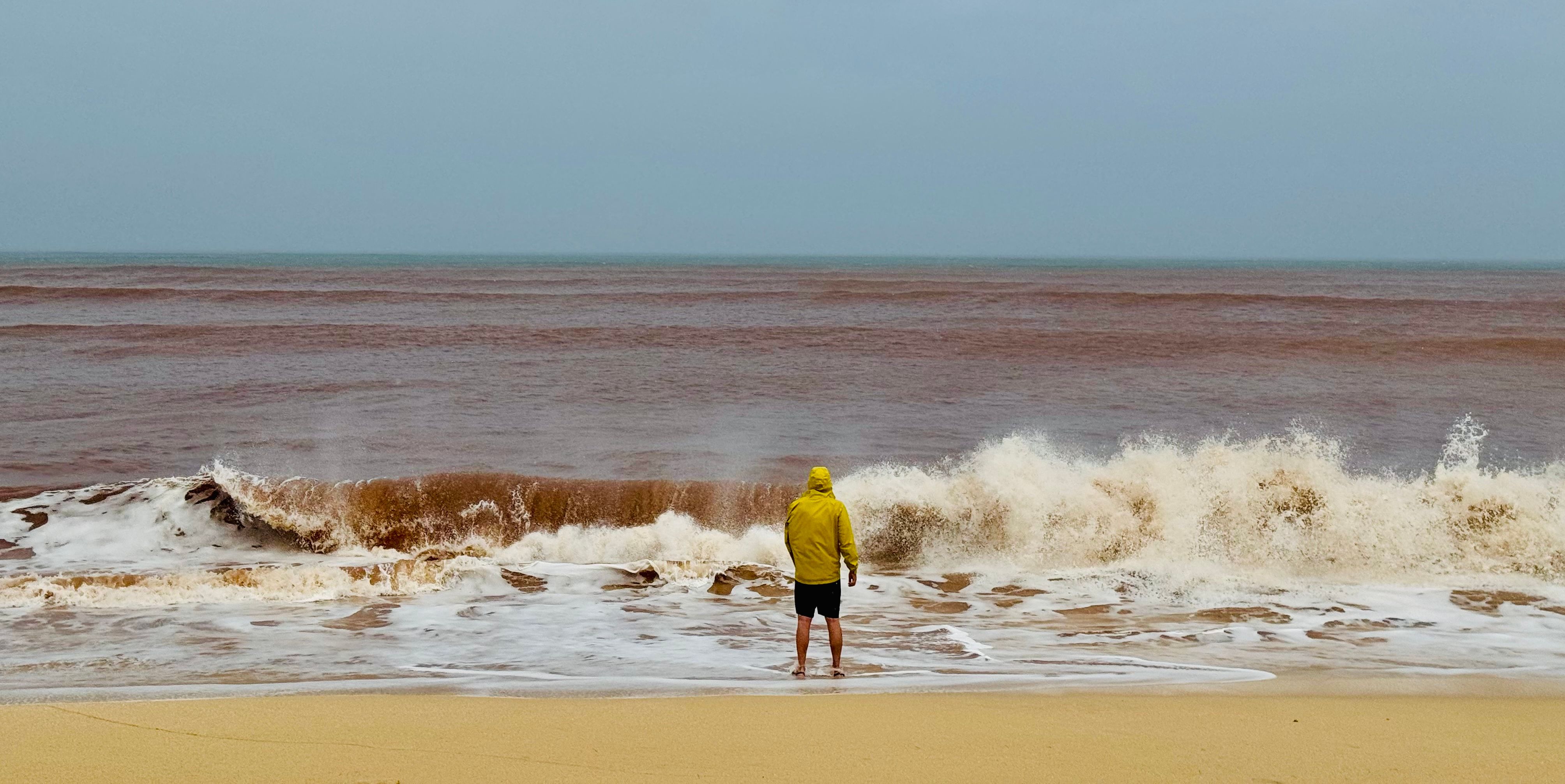 Tyler, a beach child, wanted to “kiss” the water, even during a tropical storm.